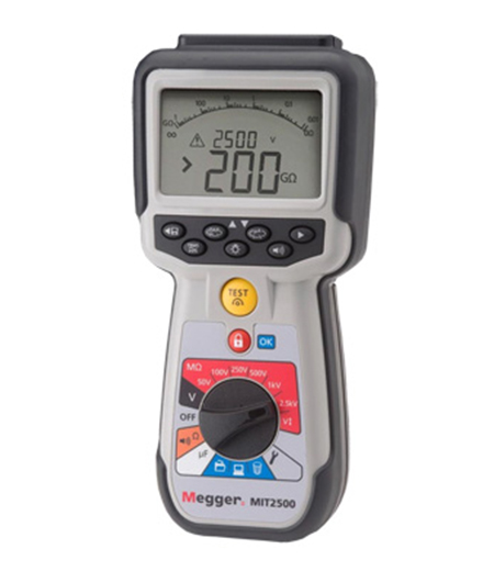 ?MIT2500測(cè)試儀可提供 50V、100V、250V、500V、1000V和2500V 的固定范圍電壓。和可變范圍,允許任何介于50V和2500V之間的電壓“拔入”。