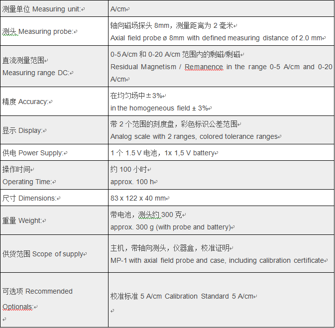 MP-1型剩磁計(jì)攜帶方便,電池供電,您可以快速可靠地確定鐵磁性鋼鐵零件上的剩磁,該測量裝置還可用于檢查退磁部件。