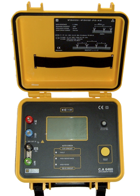4P接地電阻測(cè)試儀CA6460 產(chǎn)品編號(hào):P01126501 產(chǎn)品介紹 數(shù)字式接地電阻測(cè)試儀CA6460,可進(jìn)行接地電阻和土壤電阻率的測(cè)量。接地電阻的測(cè)量范圍為 0 至 2000 Ω,采用自動(dòng)量程設(shè)計(jì),自動(dòng)切換到最佳測(cè)量量程。CA6460外殼堅(jiān)固,操作簡(jiǎn)單,可進(jìn)行多種測(cè)量,是電氣維護(hù)人員的理想之選。其機(jī)械指標(biāo)和安全指標(biāo)(如:沖擊測(cè)試、振動(dòng)測(cè)試、跌落測(cè)試等)均符合IEC標(biāo)準(zhǔn)。由于采用高抗干擾設(shè)計(jì),其適用于各種復(fù)雜惡劣的環(huán)境(如存在影響測(cè)量精度的高雜散電流)。