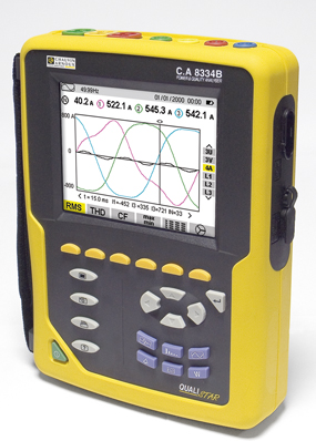 CA8334B(Qualistar)是法國(guó)CA公司最早推出的一款三相電能質(zhì)量分析儀,首度采用彩色液晶屏、實(shí)時(shí)電壓/電流波形、相位、諧波條形圖等顯示及操作簡(jiǎn)便的人機(jī)界面,使其成為電能質(zhì)量分析儀的經(jīng)典之作,也是其他廠家競(jìng)相模仿的機(jī)型。具有3路電流鉗輸入接口(可測(cè) ABC三相電流,中性線電流由程序自動(dòng)計(jì)算顯示),4路電壓輸入接口(可測(cè)ABC三相的線電壓及相電壓),適用于各行業(yè)電力系統(tǒng)供用電的電能質(zhì)量測(cè)量、診斷與分析。