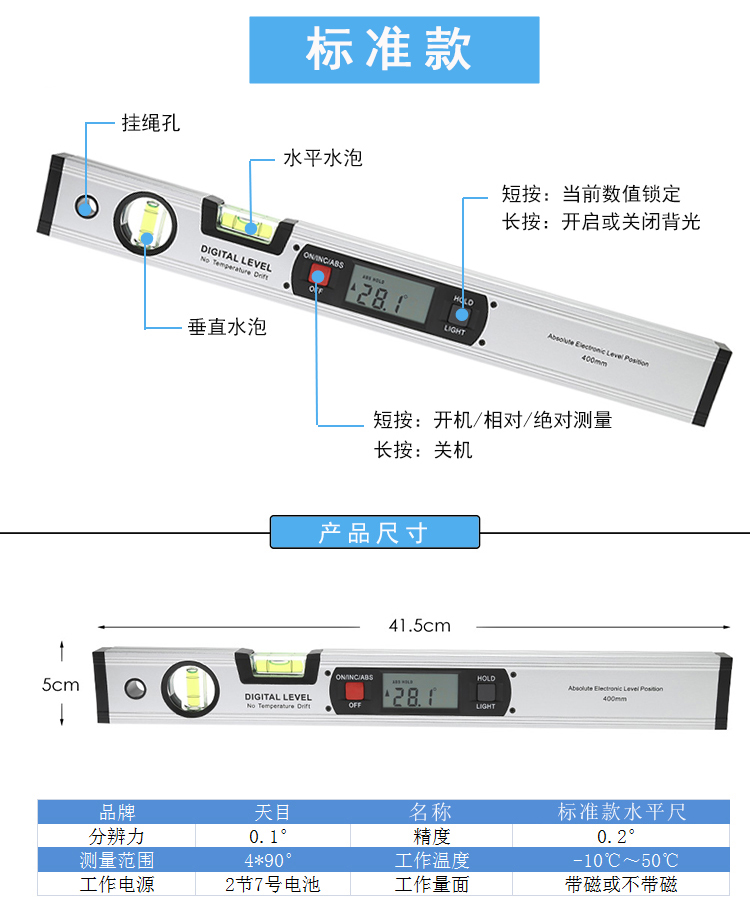 7、帶有兩個(gè)高精度水泡;